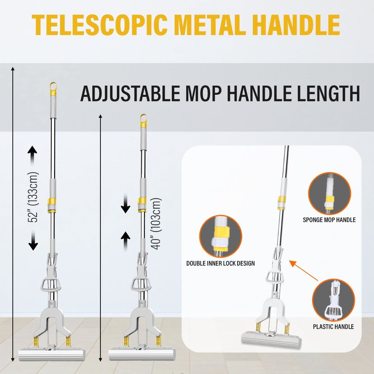 - PREMIUM QUALITY – Our mop is built with a heavy-duty gauge aluminum handle and durable plastic to last for years with proper use and care.